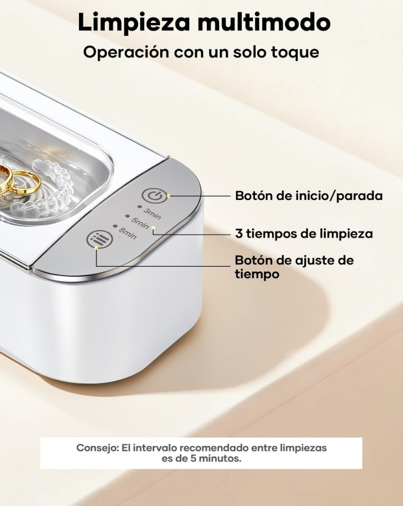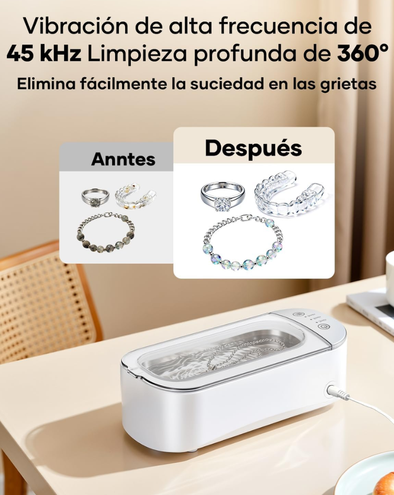 Convierte la limpieza de tus joyas en algo rápido, seguro y casi automático. Solo tienes que colocarlas, dejar que la tecnología haga su trabajo y ver cómo recuperan ese brillo que creías perdido, sin esfuerzo, sin dañarlas y desde la comodidad de tu casa.